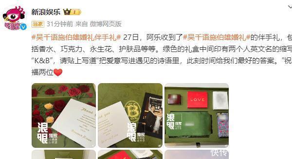 神话吴千语和施伯雄的婚仪式品公开!底本他们在伦敦办的啊~这份小礼关联词他们爱的瓦解,况且老公和太太齐太有心了。看图,小盒子里有两层,上头摆了长生花,理由即是“不朽的爱情和长久的幸福”哟。